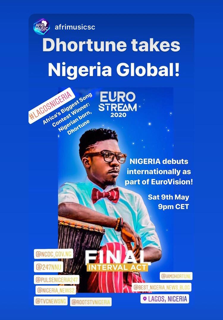 The Grand finale of Eurostream 2020 feat Dhortune Thatondoboy from Nigeria holds on May 9, 2020 by 8pm Nigerian time. You can visit http://www.eurostream for the livestreaming